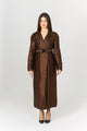 Affirmez votre élégance avec le manteau Hera , une pièce forte conçue pour sublimer le style hivernal en un luxe absolu. Confectionné dans un jacquard géométrique brun et noir raffiné, ce manteau long apporte une touche couture à la coupe classique.