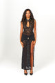 Découvrez la robe longue Mishel , symbole de séduction raffinée et d'élégance haute couture. Confectionnée en dentelle noire transparente, cette robe révèle un jeu saisissant de transparence et de texture, conçu pour sublimer chaque pas avec assurance.