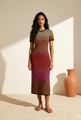 L' abito midi Lorena è un capo audace e vivace che fonde lo stile contemporaneo con un'eleganza senza tempo. Caratterizzato da un'accattivante lavorazione a maglia a spina di pesce, questo abito accattivante passa con grazia da calde tonalità neutre a vivaci sfumature di rosso e rosa, creando un effetto sfumato dinamico e moderno.