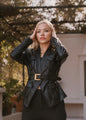 Elevate your wardrobe with our Statement Leather Blazer, a perfect blend of edgy and sophisticated. Crafted from premium faux leather, this striking piece features a tailored silhouette with unique details, including: