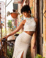 Crafted from premium fabric, the skirt’s front slit adds a subtle hint of allure, while the minimalist silhouette enhances the body’s natural curves. Perfect for summer events, garden parties, or sunset soirées, the Hava set combines timeless femininity with effortless contemporary charm.