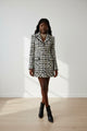 Elevate your wardrobe with the refined elegance of the Stella Tweed Mini Dress, a statement piece designed for the woman who embodies confidence and sophistication. Crafted from luxurious cream-and-black tweed, this tailored mini dress features a structured silhouette that beautifully enhances the waist and shoulders.